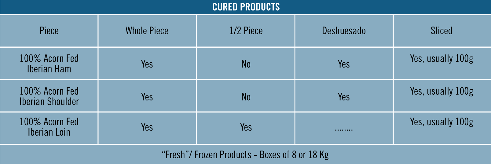 Our production is limited, and although we grow each season, it is always best to order in advance. Acorn fed Iberian loin and “fresh” meat is sold first.